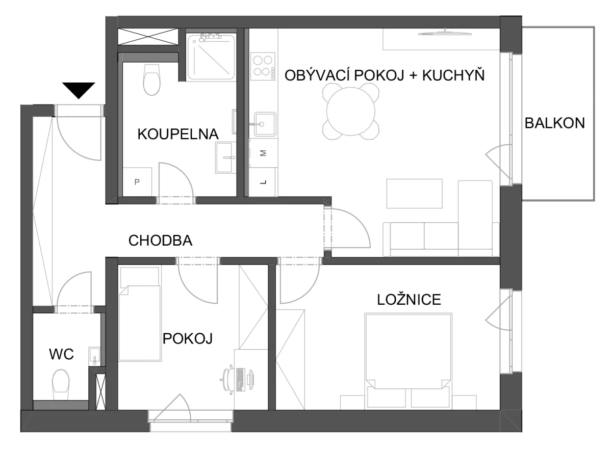 - Obývací pokoj + kuchyň 22.33 m2